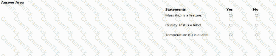 You have an Azure Machine Learning model that predicts product quality. The model has a training dataset that contains 50,000 records. A sample of the data is shown in the following table.