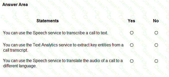 For each of the following statements, select Yes if the statement is true. Otherwise, select No.