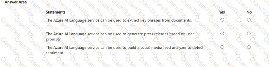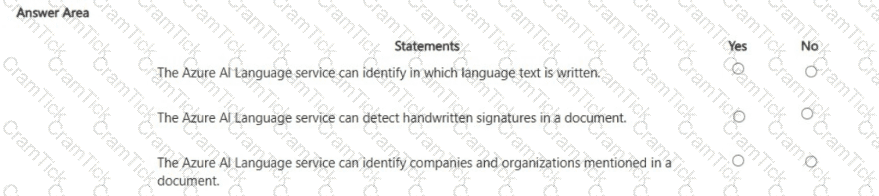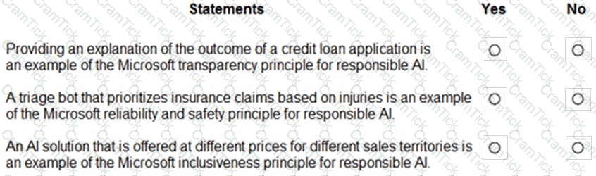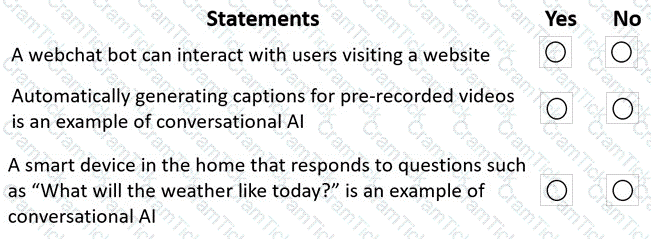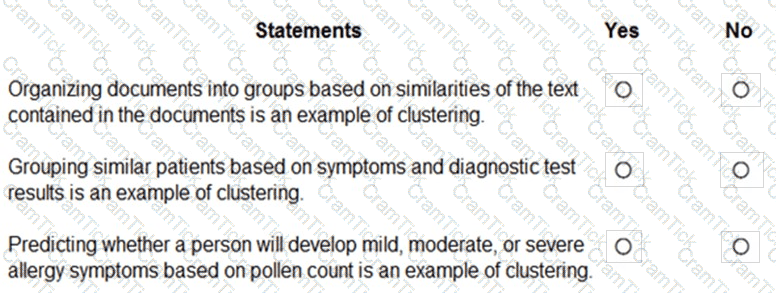 For each of the following statements select Yes if the statement is true. Otherwise, select No.