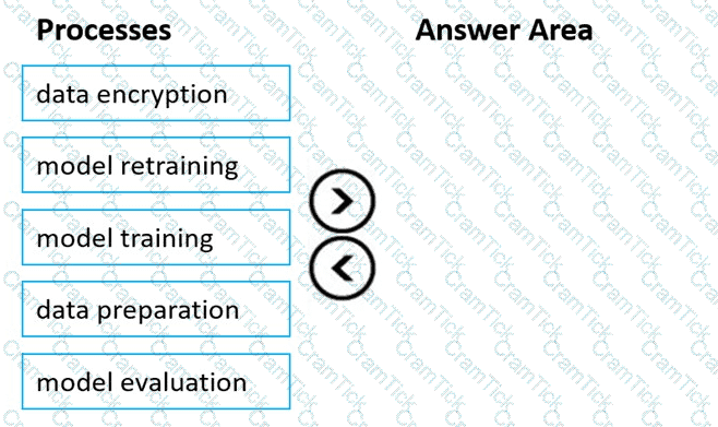 Which three processes should you perform in sequence before you deploy the model? To answer, move the appropriate processes from the list of processes to the answer area and arrange them in the correct order.