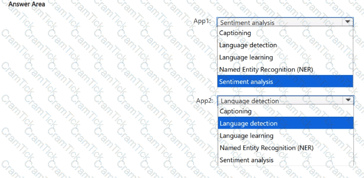 Which two types of natural language processing (NLP) workloads does the solution use? Each correct answer presents part of the solution.