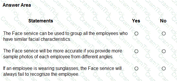 For each of the following statements, select Yes if the statement is true. Otherwise, select No. NOTE: Each correct selection is worth one point.