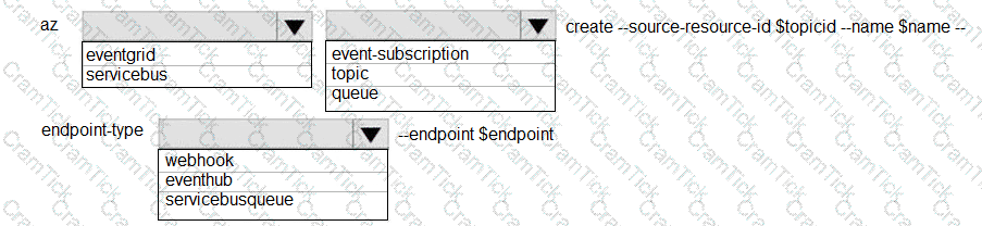 How should you complete the Azure CLI command? To answer, select the appropriate options in the answer area.