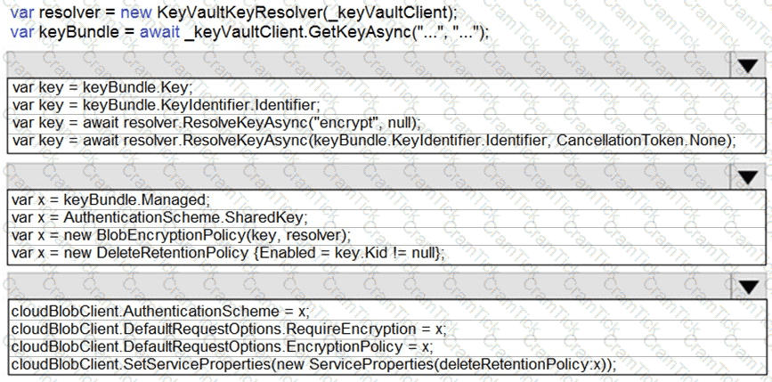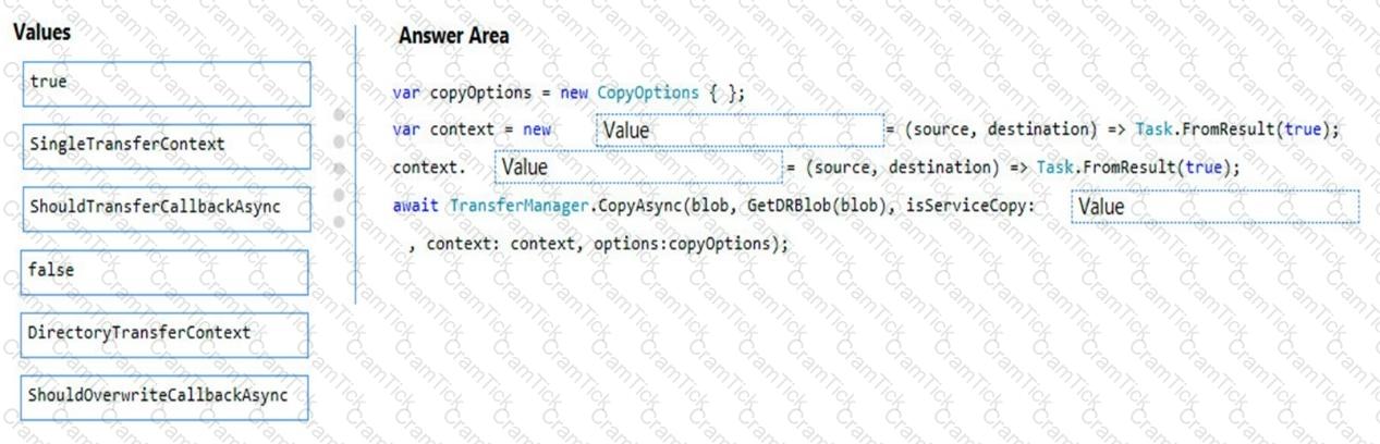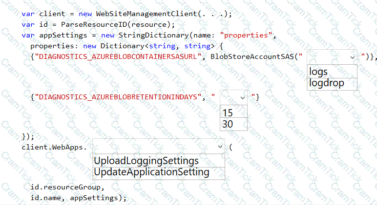 How should you complete the code segment? To answer, select the appropriate options in the answer area