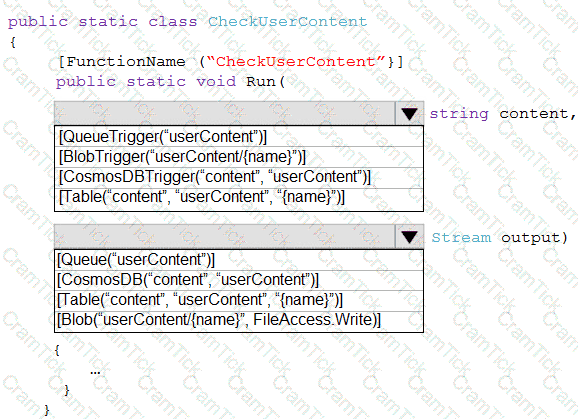 How should you implement the function? To answer, select the appropriate options in the answer area.
