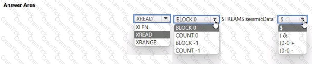 You develop new functionality in a web application for a company that provides access to seismic data from around the world. The seismic data is stored in Redis Streams within an Azure Cache for Redis instance.