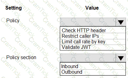 Which values should you use? To answer, select the appropriate options in the answer area.