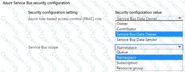 Which Service Bus security configuration should you use? To answer, select the appropriate options in the answer area.