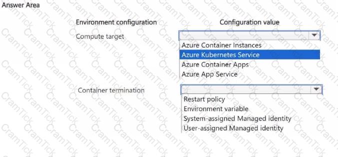 Which configuration values should you use? To answer, select the appropriate options in the answer area.