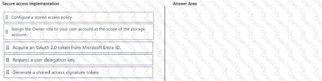 You plan to implement secure access to containers and blobs in storage 1. Your solution must satisfy the following requirements: