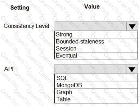 How should you configre the Azure Table Storage service? To answer, select the appropriate options in the answer area.
