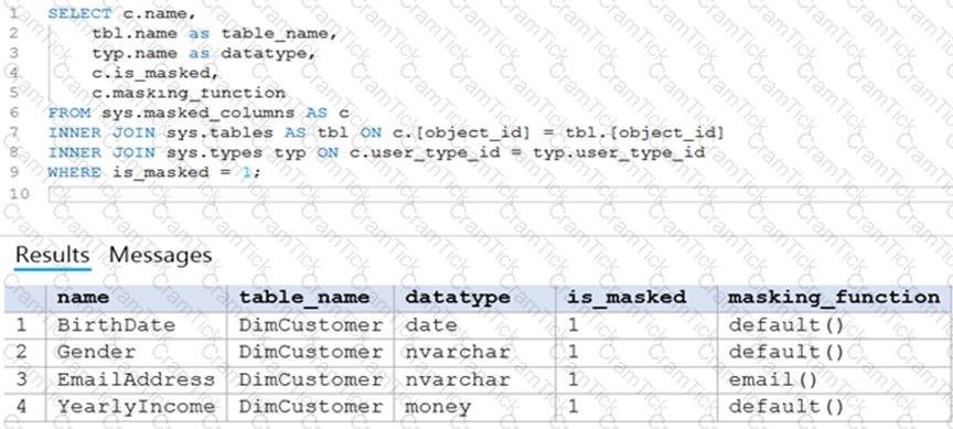 You have an Azure Synapse Analytics dedicated SQL pool that contains the users shown in the following table.