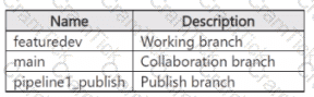 You have an Azure subscription that contains an Azure Synapse Analytics account. The account is integrated with an Azure Repos repository named Repo1 and contains a pipeline named Pipeline1. Repo1 contains the branches shown in the following table.