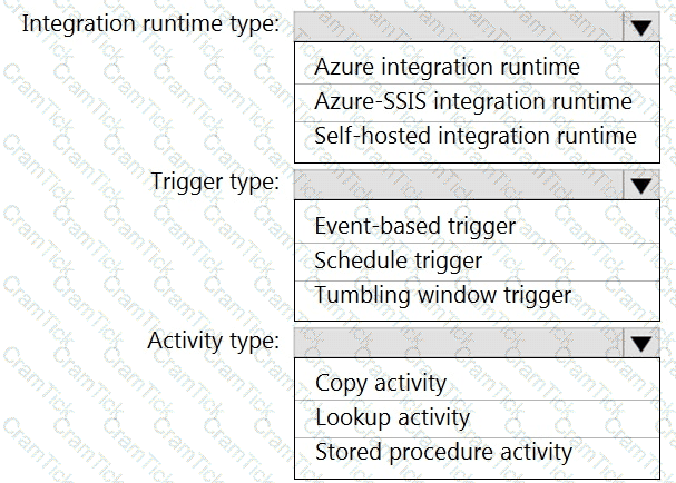 Which Azure Data Factory components should you recommend using together to import the daily inventory data from the SQL server to Azure Data Lake Storage? To answer, select the appropriate options in the answer area.