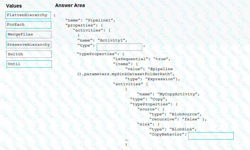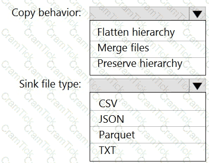 How should you configure the Data Factory copy activity? To answer, select the appropriate options in the answer area.