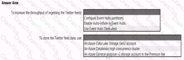 You need to ensure that the Twitter feed data can be analyzed in the dedicated SQL pool. The solution must meet the customer sentiment analytics requirements.