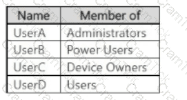 The tenant contains a standalone workgroup computer named Computer1 that runs Window 11. Computer1 contains the local users shown in the following table.