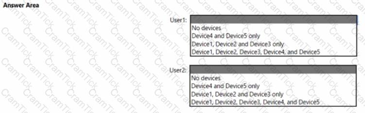 To which devices do Policy1 and Policy2 apply? To answer, select the appropriate options in the answer area.