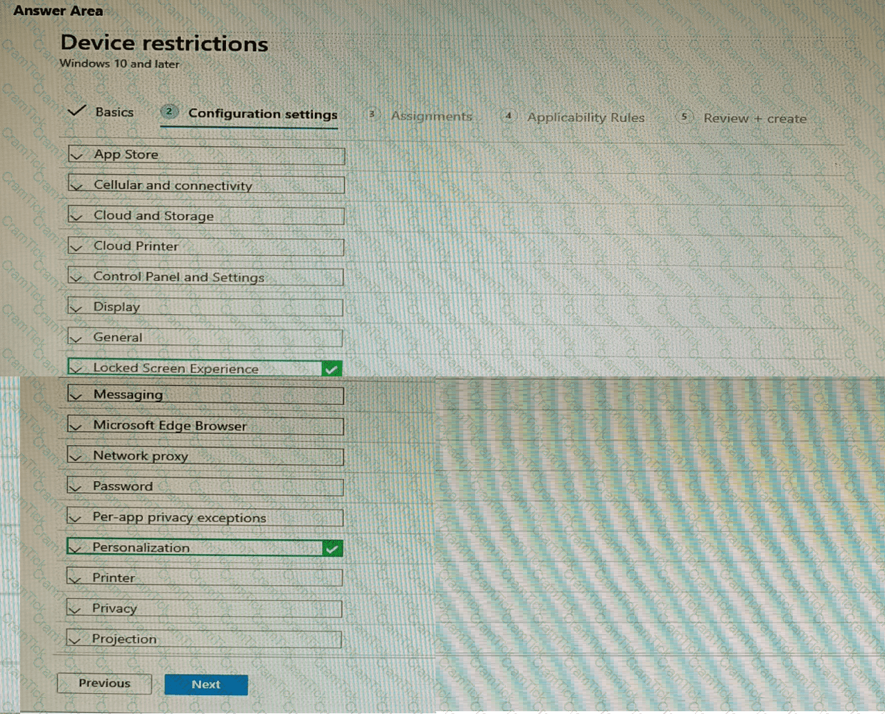 You have 200 computers that run Windows 10. The computers are joined to Azure AD and enrolled in Microsoft Intune. You need to set a custom image as the wallpaper and sign-in screen.