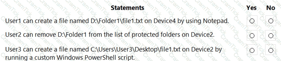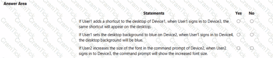 For each of the following statements, select Yes if the statement is true. Otherwise, select No. NOTE: Each correct selection is worth one point.