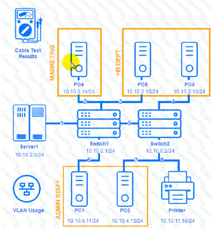 Troubleshoot all the network components and review the cable test results by Clicking on each device and cable.