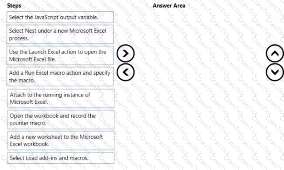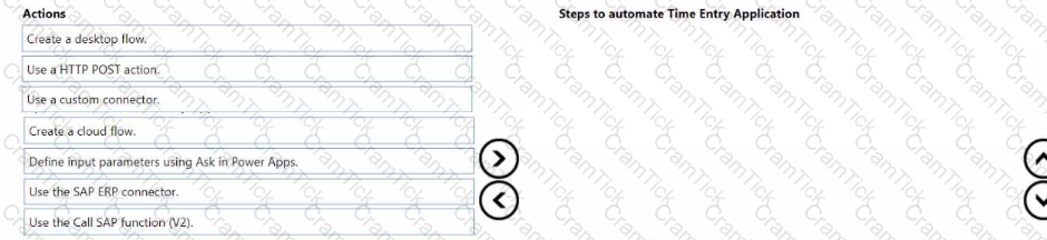 You need to configure the desktop action for the MaintenanceScheduler cloud flow. Which two actions should you perform? Each correct answer presents part of the solution. NOTE: Each correct selection is worth one point.