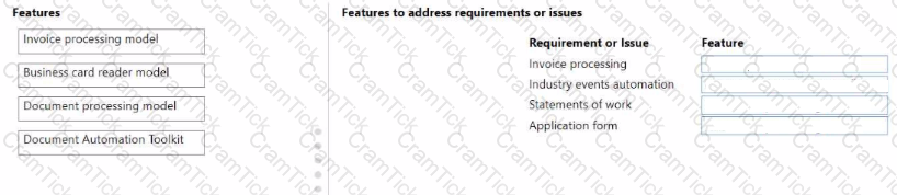 Which feature should you recommend? To answer, move the appropriate feature to the coned requirement or issue. You may use each feature once, more than once, or not at all. You may need to move the split bar between panes or scroll to view content