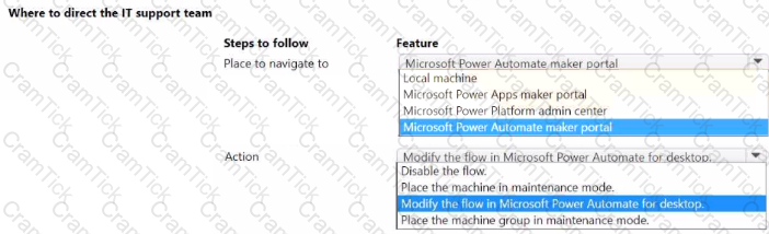 Where should you direct them to resolve the problem? To answer, select the appropriate options in the answer area.