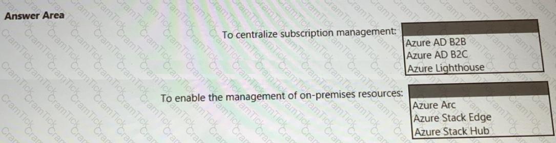 You need to recommend a multi-tenant and hybrid security solution that meets to the business requirements and the hybrid requirements. What should you recommend? To answer, select the appropriate options in the answer area. NOTE: Each correct selection is worth one point.