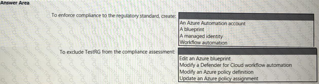 You need to recommend a solution to evaluate regulatory compliance across the entire managed environment. The solution must meet the regulatory compliance requirements and the business requirements.