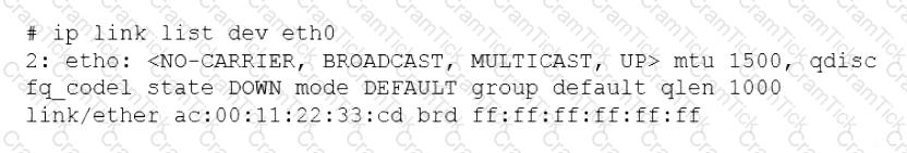 A systems administrator is troubleshooting connectivity issues and trying to find out why a Linux server is not able to reach other servers on the same subnet it is connected to. When listing link parameters, the following is presented: