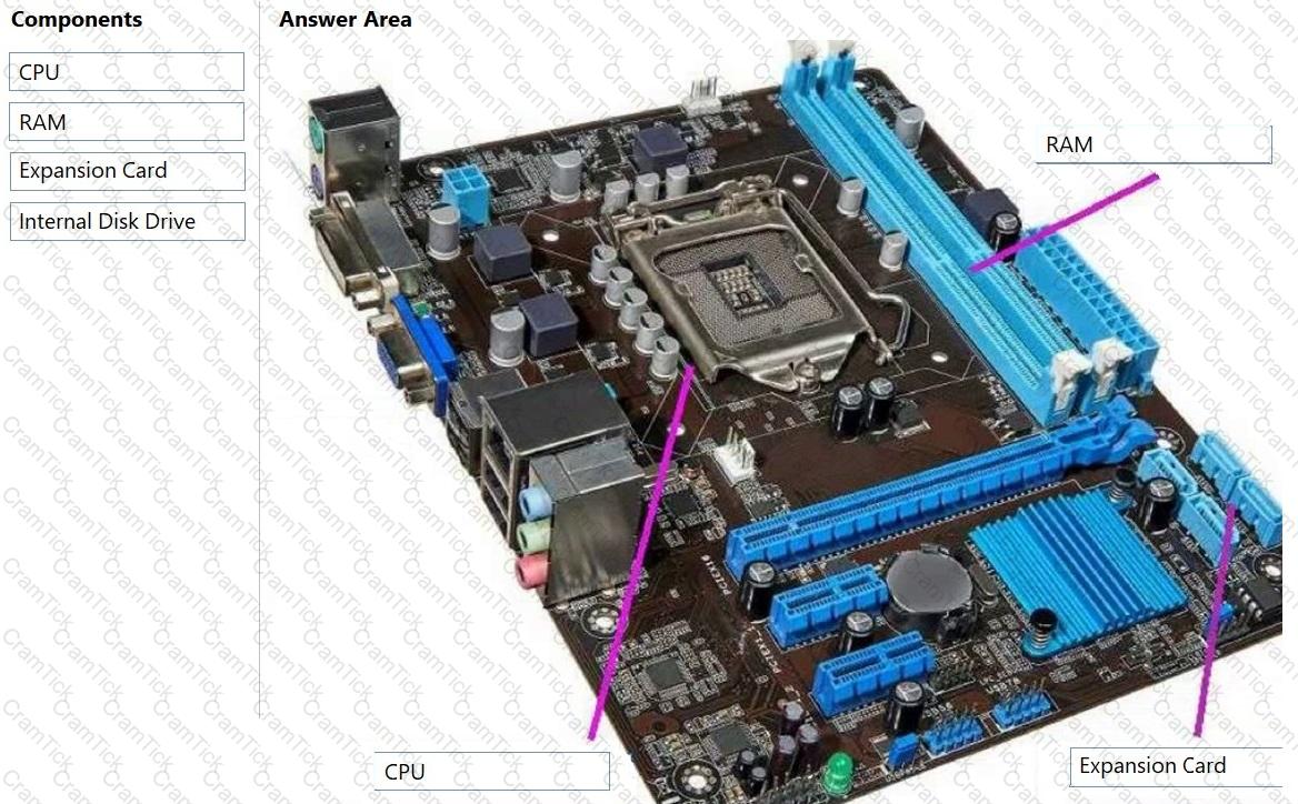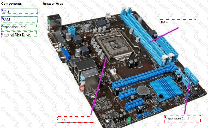 A customer purchased a new motherboard for a desktop computer. The customer needs help installing the correct components. The customer sends you a picture of the motherboard, which is shown in the answer area.
