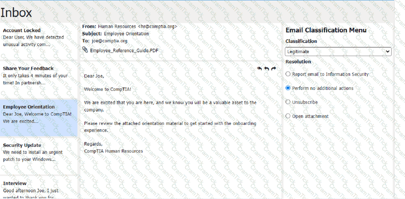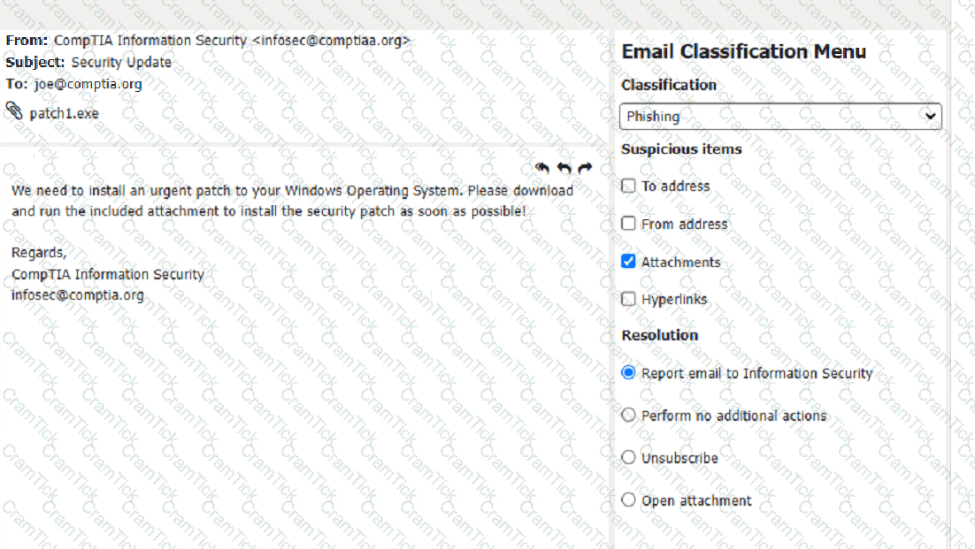 An employee of Company X receives an email from ITdepartmint@companyx.com that appears to be from the local IT administrator. This email states that the employee's computer has been infected with a virus and an included link must be clicked to remove the virus. Which of the following actions should the employee take next?