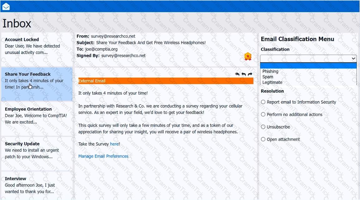As a corporate technician, you are asked to evaluate several suspect email messages on a client's computer. Corporate policy requires the following: