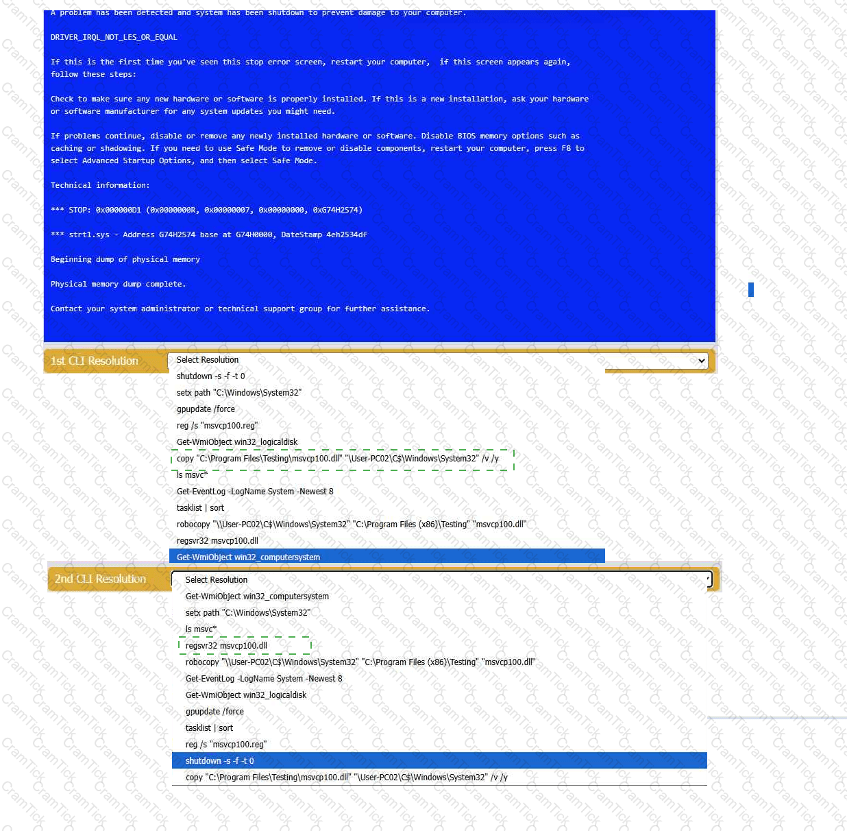 A user logs in daily and cannot print a report. Help desk fixes it each day, but the issue recurs. What should be done so the issue doesn’t recur? (Select two)