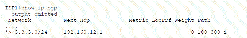 A company with autonomous system number AS65401 has obtained IP address block 209.165.200.224/27 fro, ARIN. The company needed more IP addresses and was assigned block209.165.202.128/27 from ISP2. An engineer is ISP1 reports they are receiving ISP2 routes from AS65401. Which configuration onR1 resolves the issue?