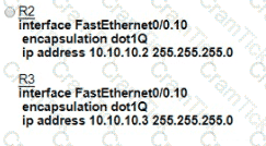 Refer to the exhibit. An administrator wanted to make R1 always elected as DR. R2 as BDR. and R3 as DROTHER but could not achieve the desired results. Which two configurations resolve the issue? (Choose two.)
