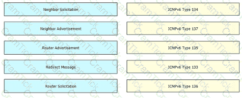 Drag and drop the ICMPv6 neighbor discovery messages from the left onto the correct packet types on the right.