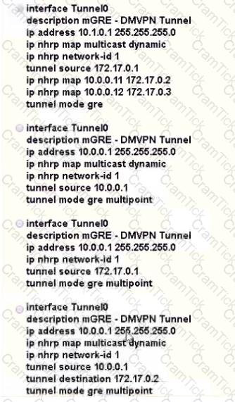 An engineer has configured DMVPN on a spoke router. What is the WAN IP address of another spoke router within the DMVPN network?