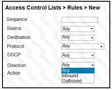 An engineer is creating an ACL to restrict some traffic to the WLC CPU. Which selection must be made from the direction drop- down list?