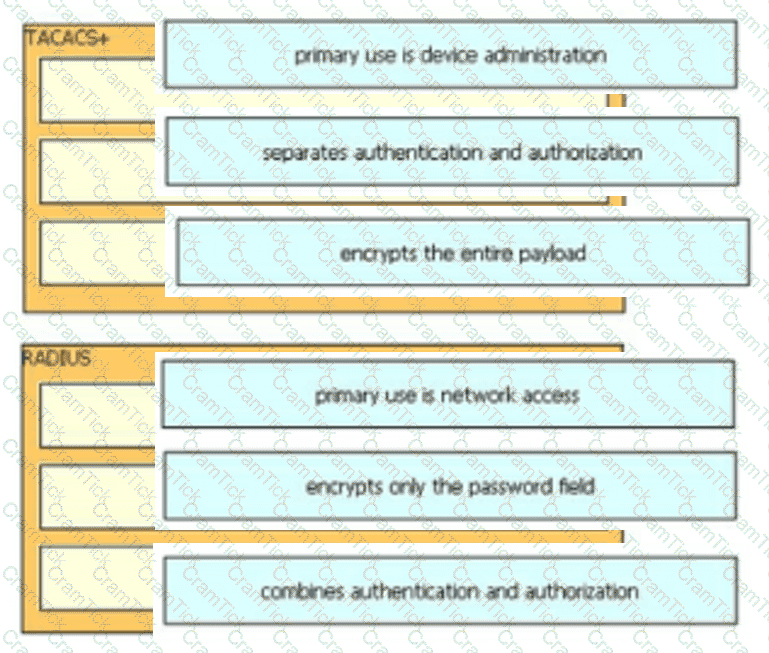 What are two differences between the RADIUS and TACACS+ protocols'? (Choose two.)