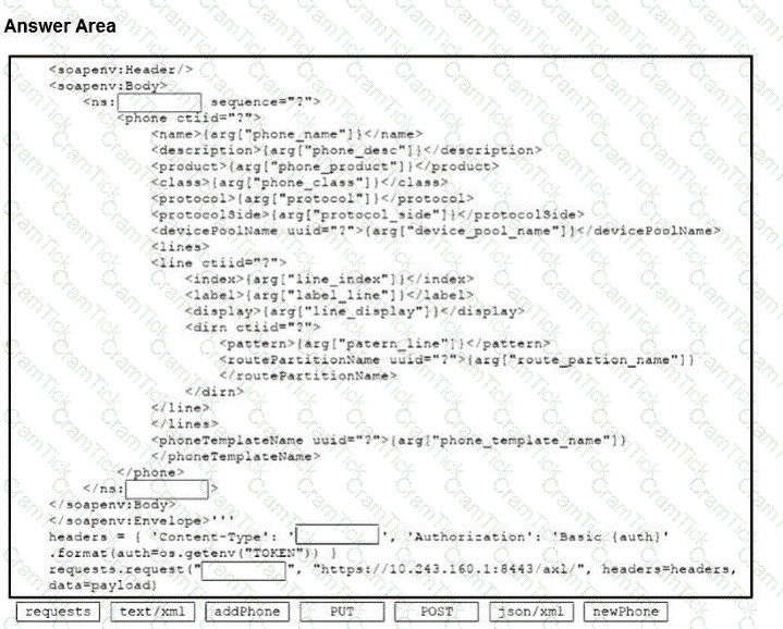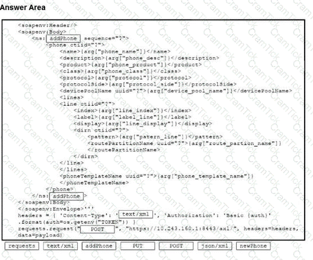 create a new phone in Cisco UCM using the AXL API. Some options may be used more than once. Not all options are used.