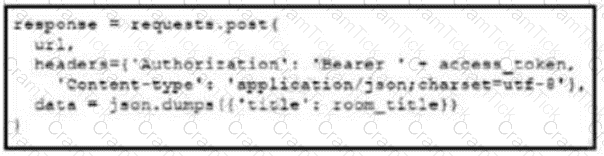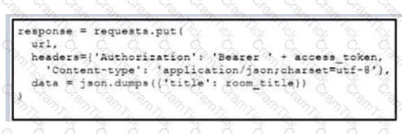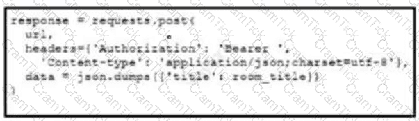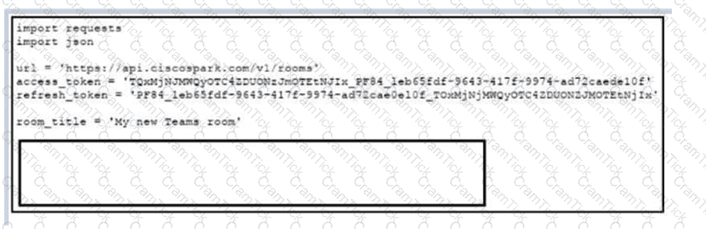 A collaboration engineer needs to create a new Webex user. Which code snippet must be placed in the blank in the code to meet