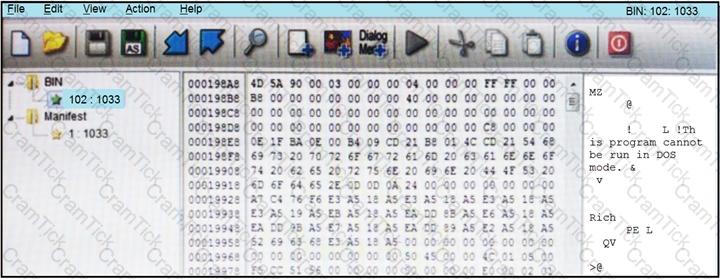 An engineer is reverse engineering a suspicious file by examining its resources. What does this file indicate?