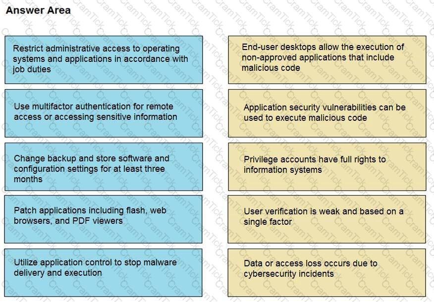 Drag and drop the mitigation steps from the left onto the vulnerabilities they mitigate on the right.