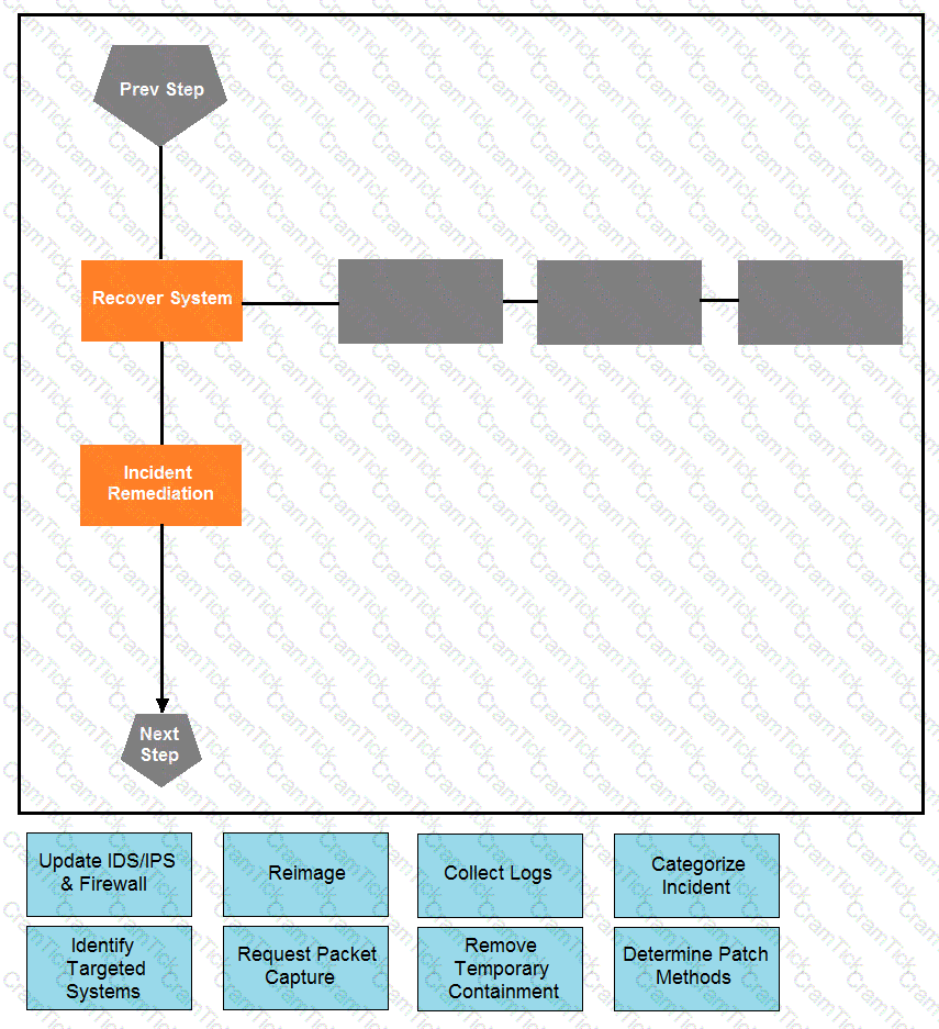 Drag and drop the actions below the image onto the boxes in the image for the actions that should be taken during this playbook step. Not all options are used.