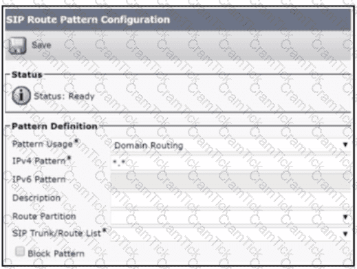 In Cisco UCM, an engineer must create a new SIP route pattern that must be reachable by all internal callers. The internal callers have a calling search space named CSSJNTERNAL that includes a partition named PTJNTERNAL. The SIP trunk has a calling search space named CSS_SIP_RP that includes the two partitions named PT_SIP_INTERNAL and PT_SIP_LOCAL What must be used as the route partition for the SIP route pattern?