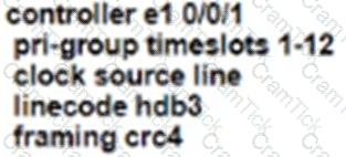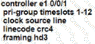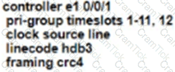 Refer to the exhibit. An administrator must replace the T1 card with an E1 card. What is the correct configuration if the administrator was asked to configure 12 time slots?