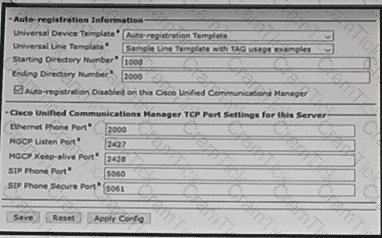 Refer to the exhibit. Unanswered calls do not reach the voicemail associated with the phones Instead, callers receive the default greeting Which action fixes the configuration?