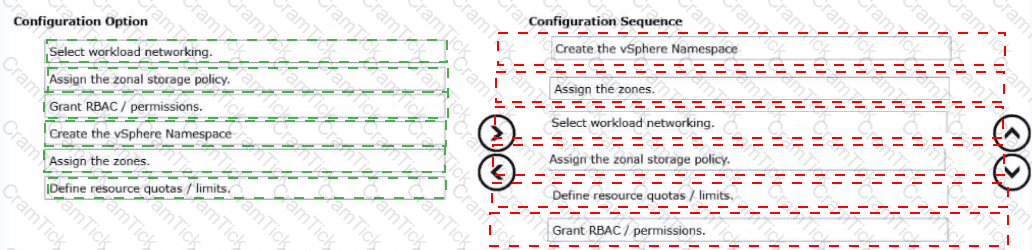 Drag and drop the six actions into the correct order from Configuration Option list on the left and place them Into the Configuration Sequence on the right.